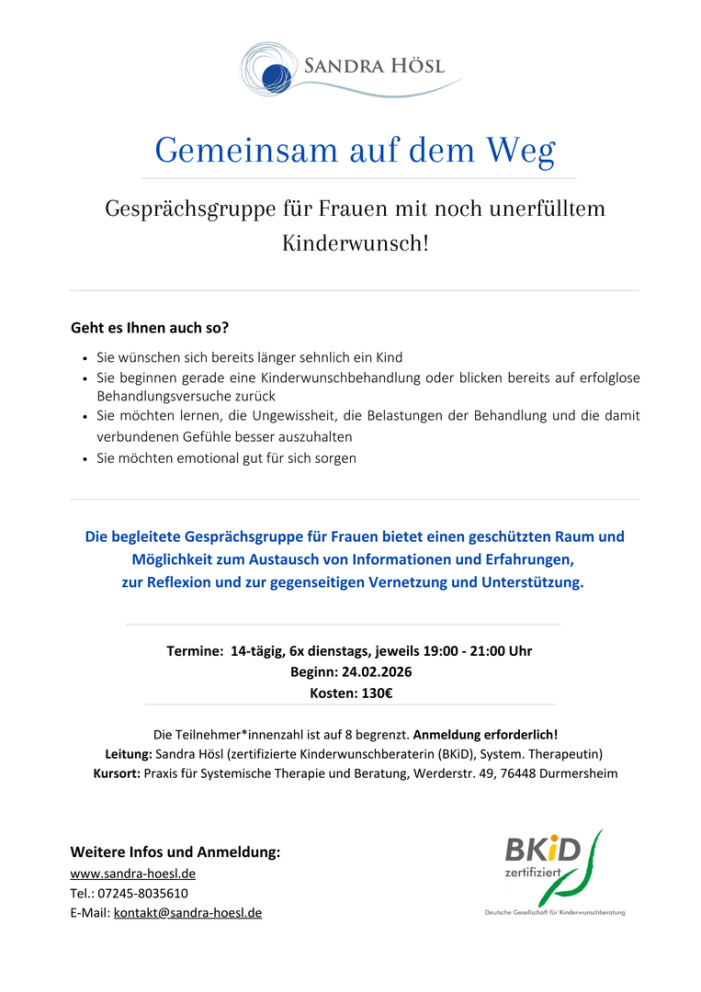 Gesprächsgruppe für Frauen mit noch unerfülltem Kinderwunsch